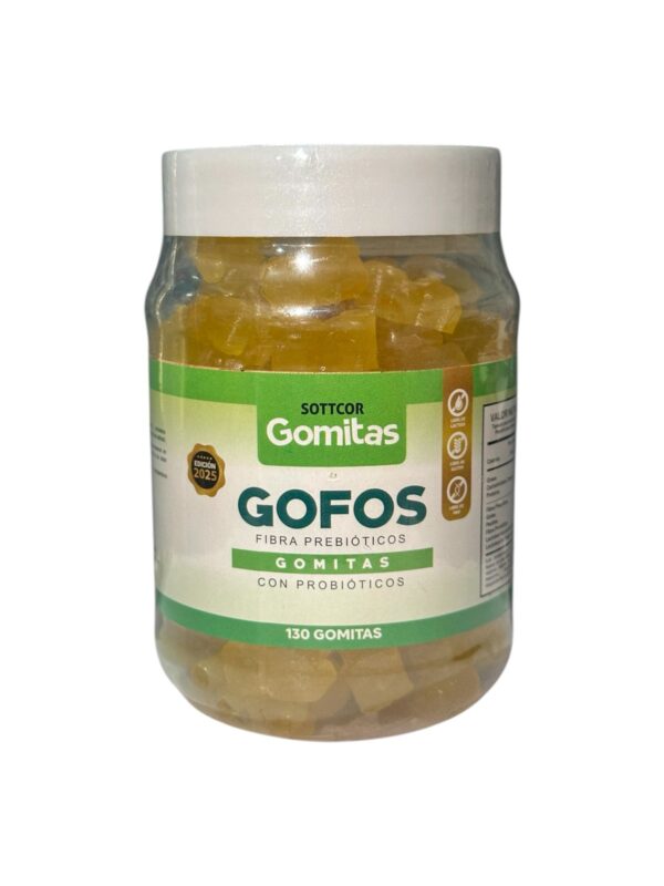 Las gomitas de fibra prebiótica GOFOS Sottcor para adultos (130 unidades) son un suplemento diseñado para mejorar la salud digestiva y la microbiota intestinal. Ofrecen beneficios como la reducción del colesterol, control de glucosa, mejora del sistema inmunológico y absorción de minerales, con un bajo aporte calórico y un efecto saciante, ideal para controlar el peso.