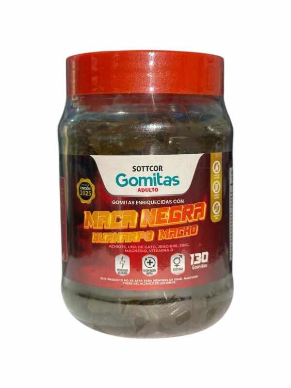 Las gomitas de Maca Negra Sottcor para adultos son un suplemento natural diseñado para aumentar la energía, resistencia física y vitalidad, ideal para combatir el cansancio mental. Su fórmula ayuda a mejorar el rendimiento sexual, la concentración, el equilibrio hormonal y reducir el estrés.